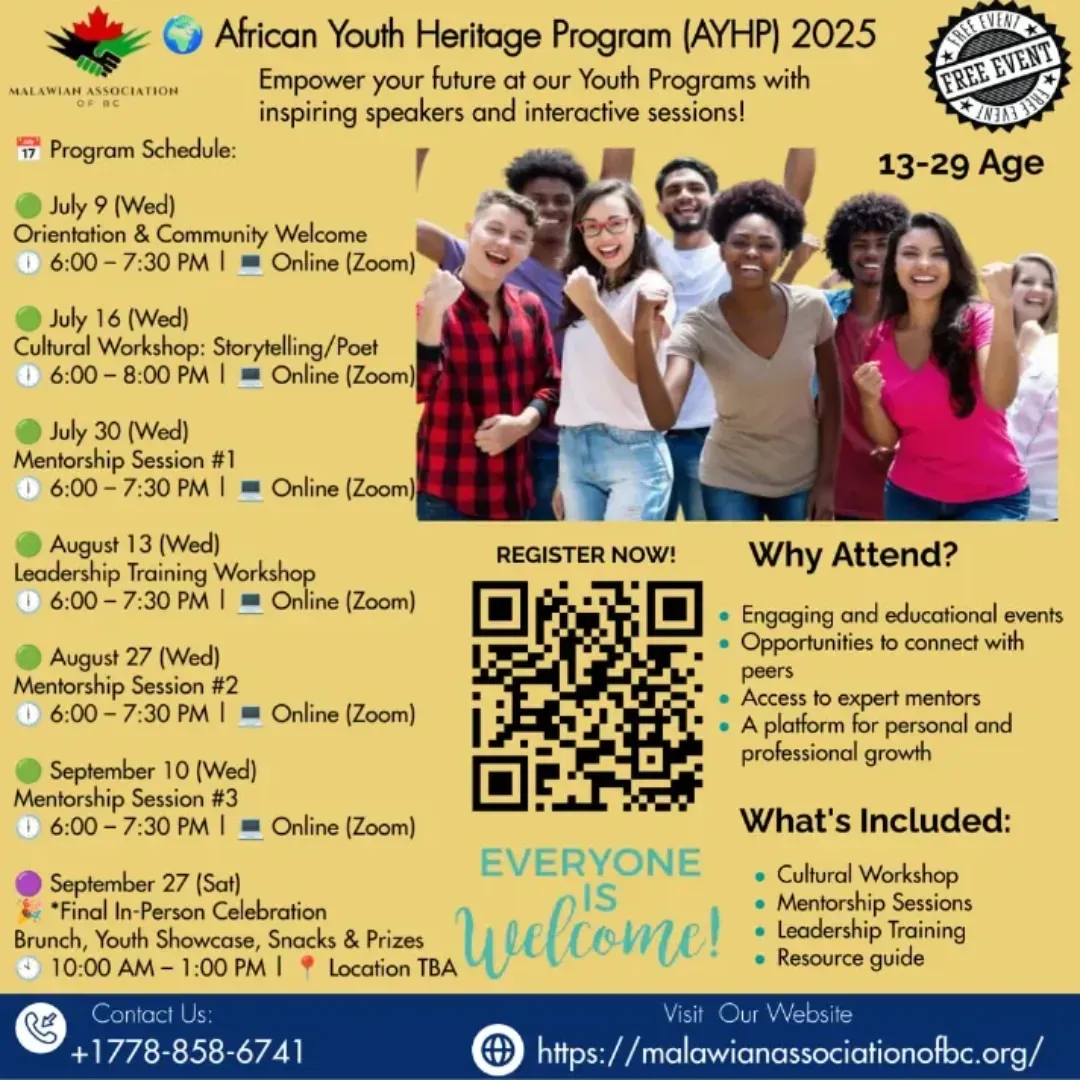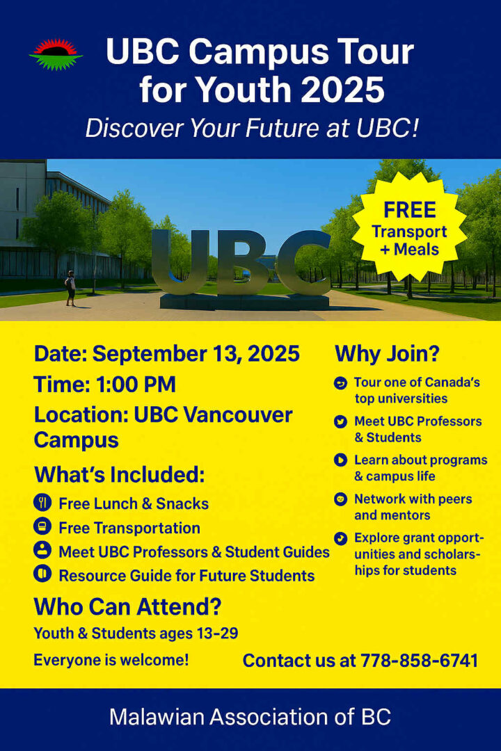 Malawian Association Of British Columbia was founded in 2020 with the aim of fostering a vibrant and inclusive community that celebrates Malawian culture, promotes socioeconomic growth, and empowers individuals to thrive.